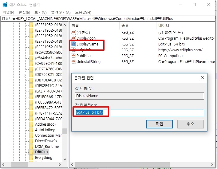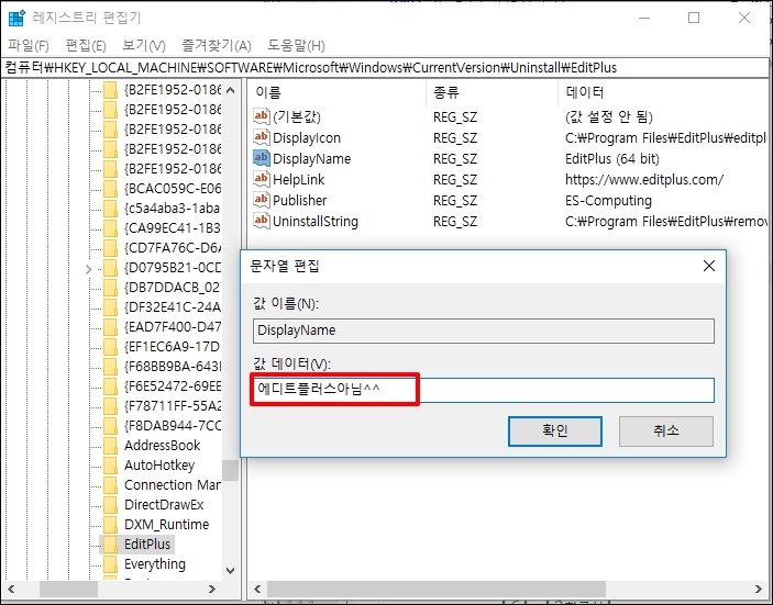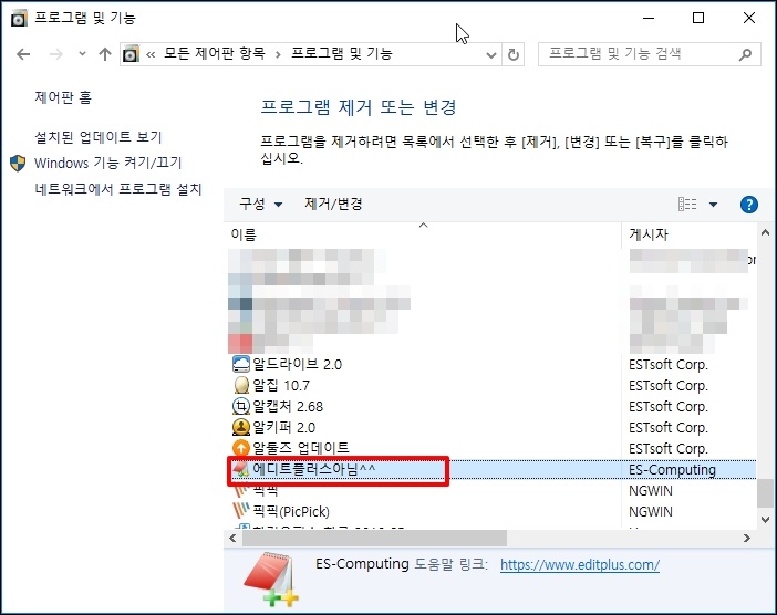 저는 EditPlus라는 프로그램을 없애보겠습니다.