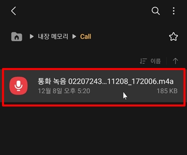 통화되어 자동 저장된 녹음 파일 보입니다.