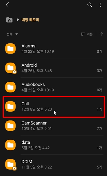 갤럭시 통화 자동 녹음 설정 파일 저장 위치 확인