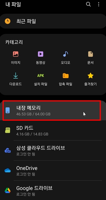 내 파일이 실행되면 [내장 메모리]를 선택합니다.