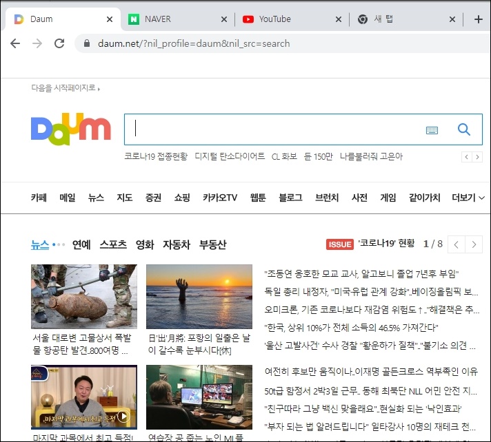 컴퓨터를 끄고 재부킹하게 되면 크롬 실행 후 자주 사용하는 사이트를 접속해야 합니다.