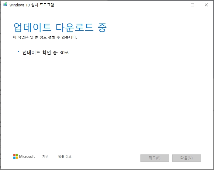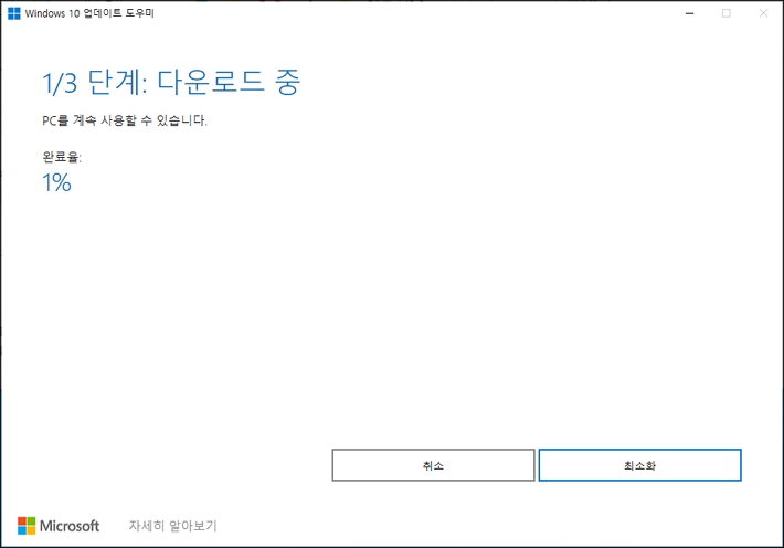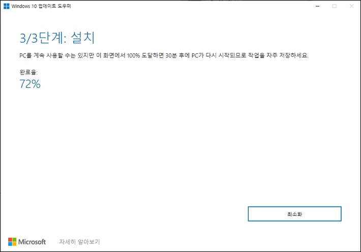 다운로드가 완료되면 윈도우 10 업데이트가 진행됩니다.