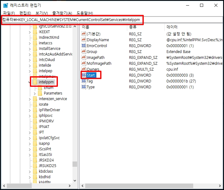 컴퓨터\HKEY_LOCAL_MACHINE\SYSTEM\CurrentControlSet\Services\intelpp