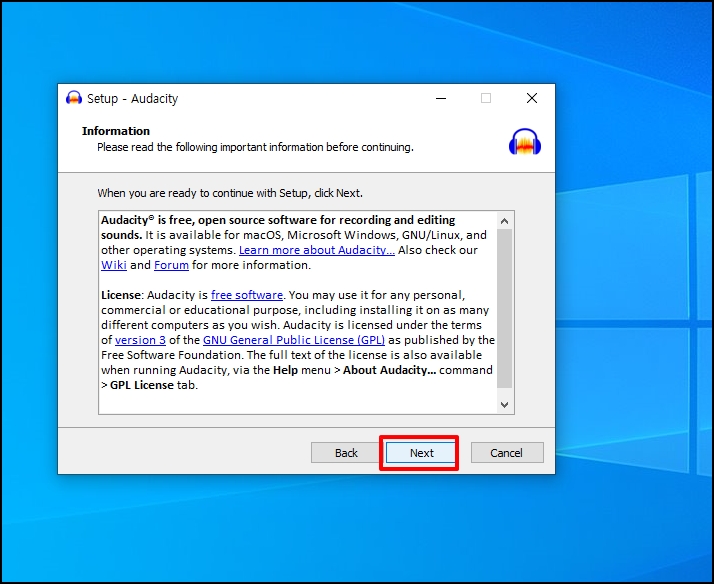 프로그램을 다운로드하기 위해 구글에서 "Audacity"를 검색합니다.
