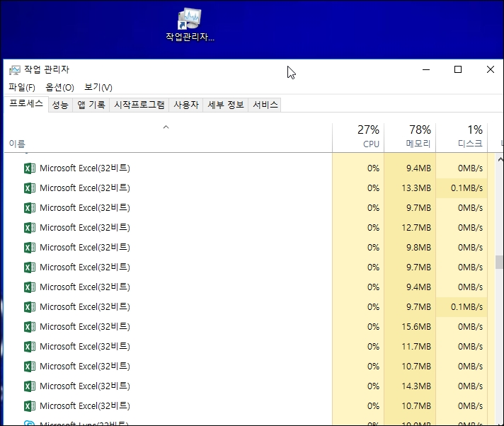 테스트를 위해 더블클릭합니다. 작업 관리자 창이 실행되면 잘 된 겁니다.
