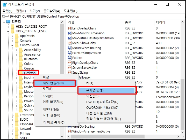 컴퓨터\HKEY_CURRENT_USER\Control Panel\Desktop