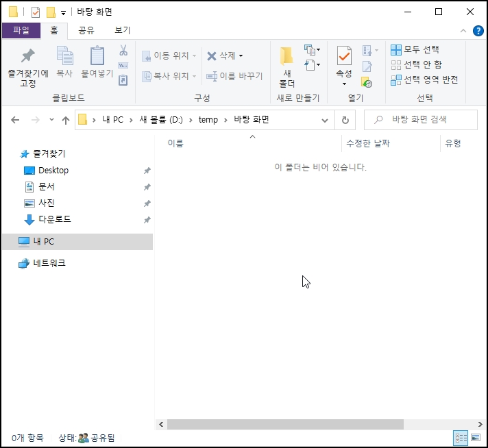폴더 안내 파일이 없는 것을 확인할 수 있습니다.