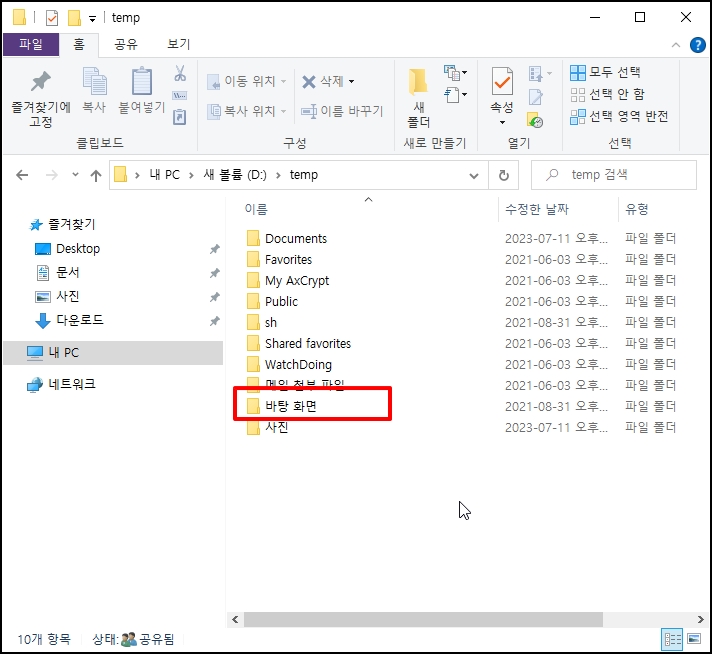 윈도우 탐색기에서 폴더 생성 후 해당 파일을 폴더에 넣고 관리합니다.