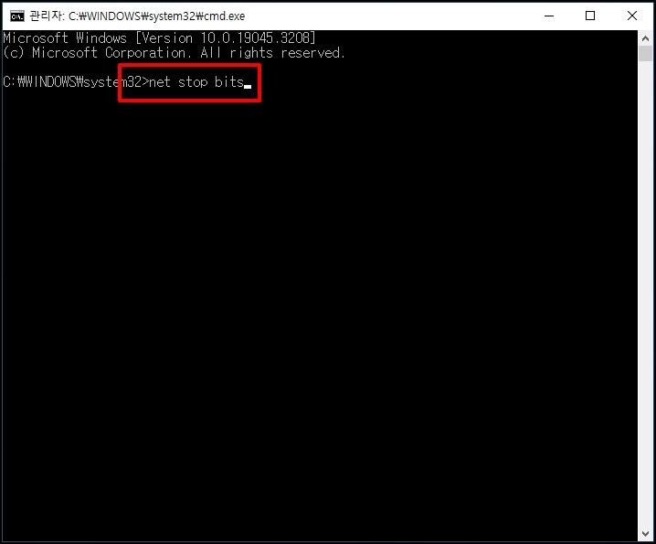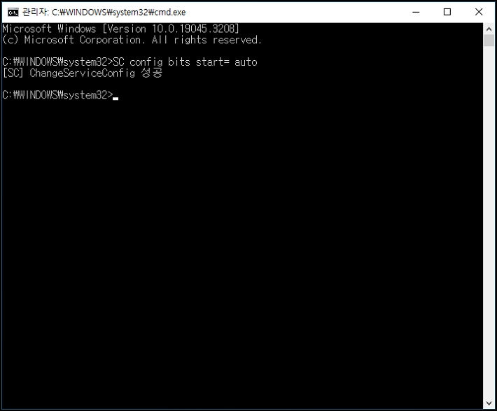 관리자 권한을 가진 명령 프롬프트에서 아래 명령어도 입력 후 엔터키를 눌러줍니다.