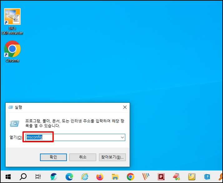 "윈도우키 + R" 키를 누르고 실행 창이 열리면 "msconfig"를 입력 후 엔터키를 눌러주세요