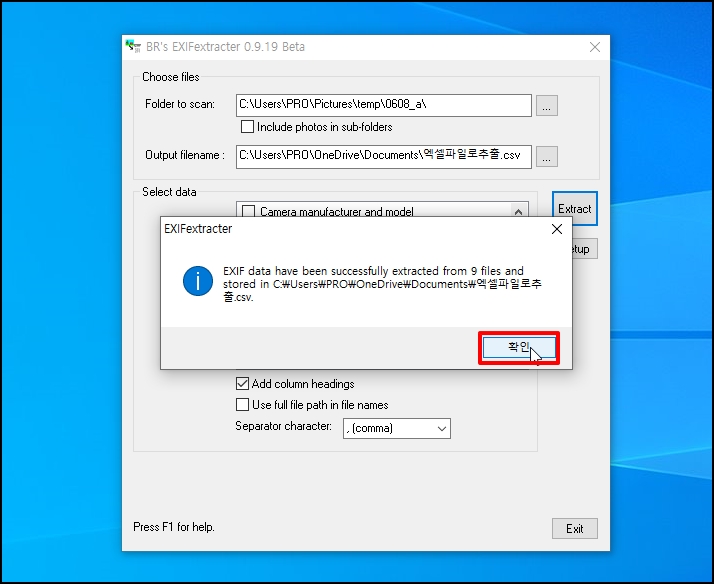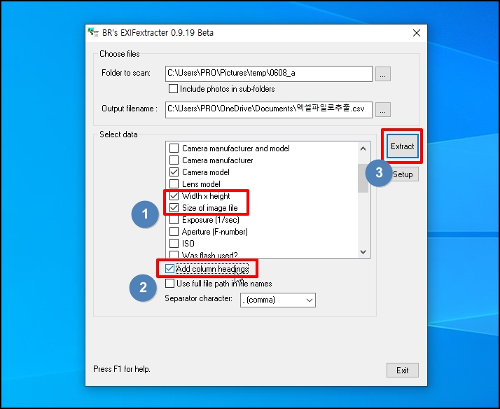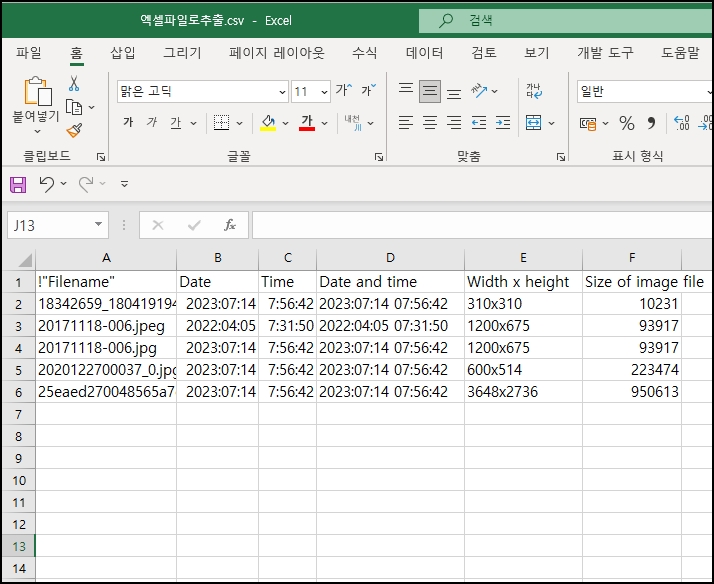 윈도우 폴더 안 이미지 사진 파일 정보 엑셀로 추출하는 프로그램