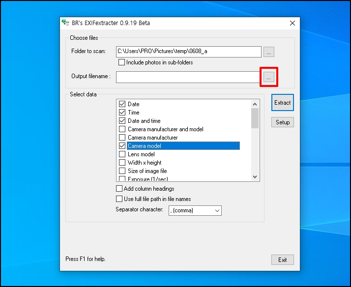 이제 [Output filename] 우측 폴더 아이콘을 눌러주세요