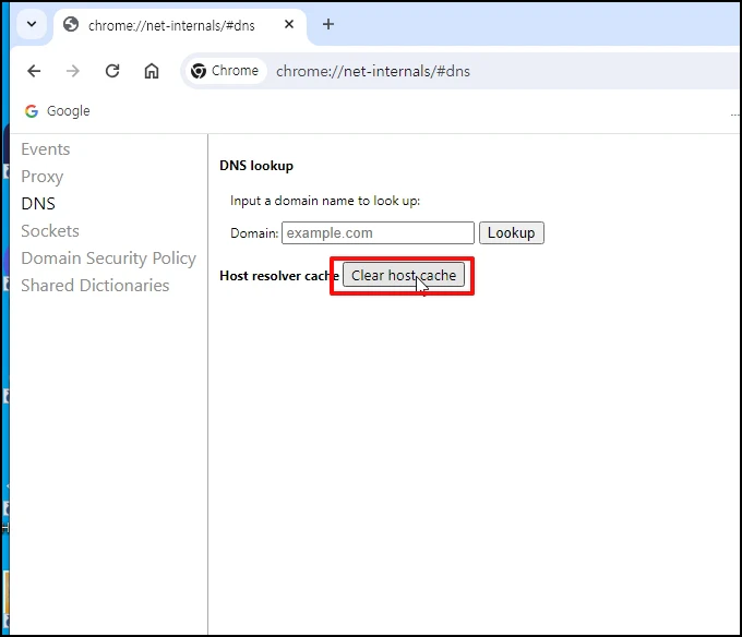 우측 DNS Lookup 화면에서 [Clear host cache] 버튼을 클릭합니다
