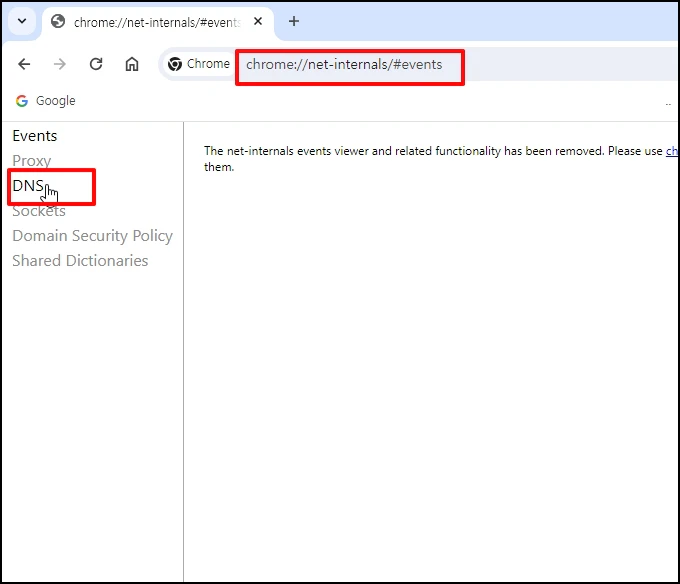 크롬 브라우저 재실행 후 주소창에 "chrome://net-internals"를 입력 후 엔터키를 눌러주세요