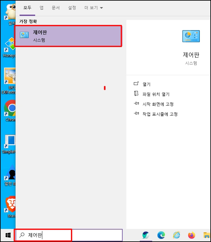작업 표시줄 제어판에 "제어판"을 검색 후 제어판이 검색되면 실행해 주세요
