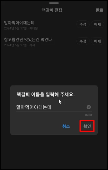 수정할 책갈피 문구에서 우측 [수정]을 선택합니다.
