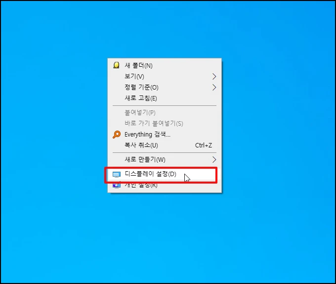 바탕화면에서 마우스 오른쪽 버튼을 클릭합니다.