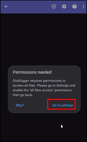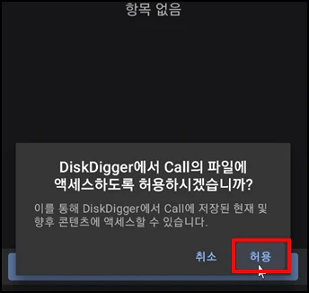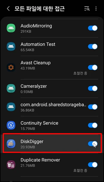 모든 파일에 대한 접근 리스트 화면으로 이동하면 목록 중 [DiskDigger]활성화 합니다.