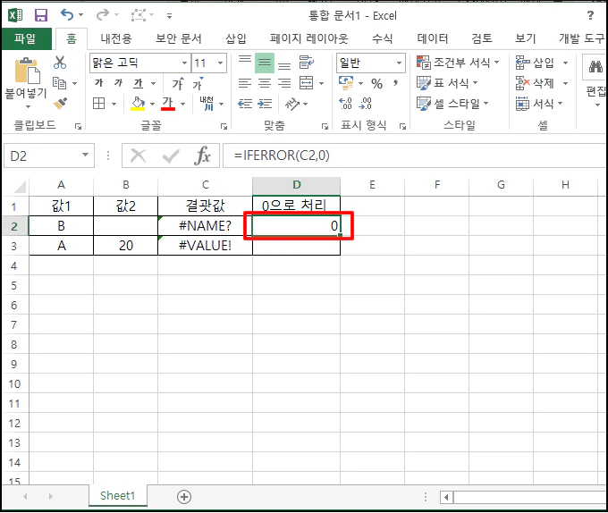 이런 오류 발생 시 "0"으로 표시하도록 할 수 있는데요.