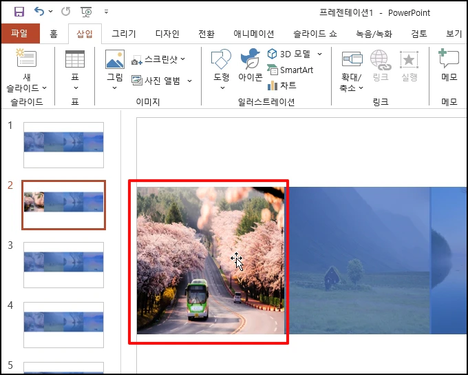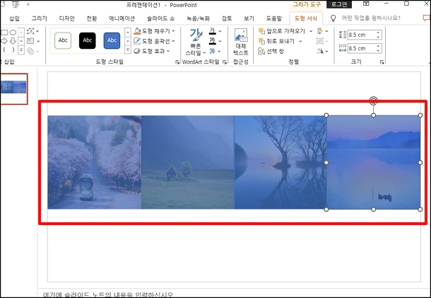 파워포인트 실행 후 여러 개의 그림을 먼저 삽입합니다. 그림을 삽입하기 위해