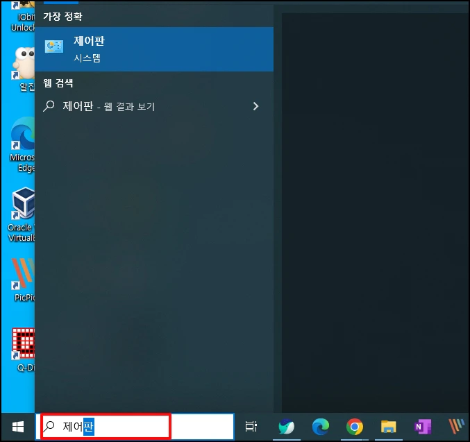 작업 표시줄에 "제어판"을 입력합니다. 제어판이 검색되면 클릭해서 실행해 주세요.