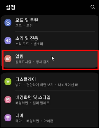 설정화면에서 [알림]을 선택합니다.