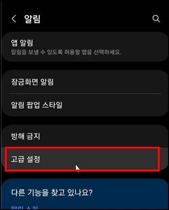 알림 화면으로 이동하면 메뉴 중 [고급 설정]을 선택합니다.