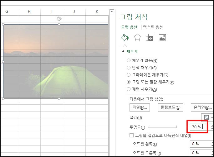 엑셀에서 이미지 특정 부분 투명하게 만들기 단계별 설명