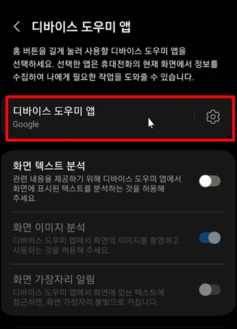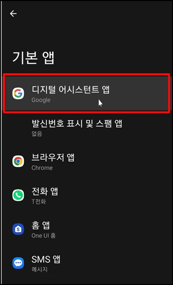 기본 앱 화면에서 [디지털 어시스턴트 앱]을 선택해 주세요