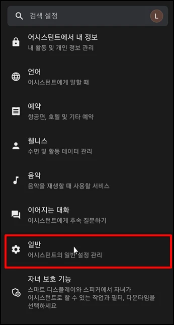 Google 어시스턴트 화면으로 이동하면 [일반]을 선택합니다.