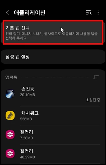 애플리케이션 화면으로 이동하면 [기본 앱]을 선택합니다.