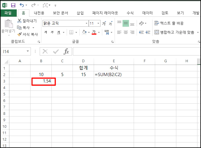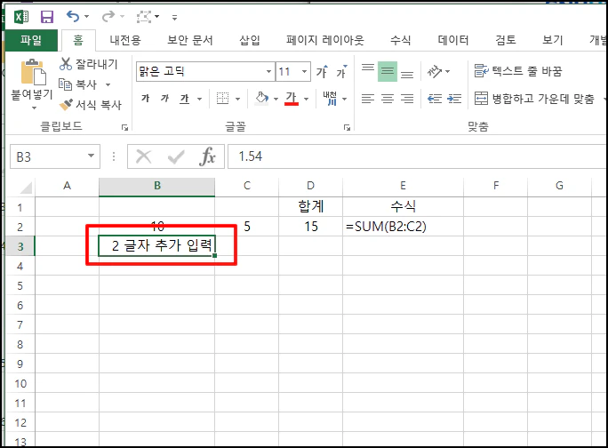 간단한 수식을 준비했습니다. 셀에 숫자를 입력 후 합계를 구하는 수식입니다.