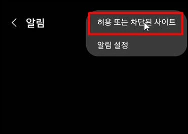 메뉴가 나오면 [허용 또는 차단된 사이트] 를 선택합니다.