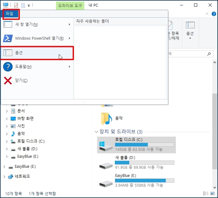 메뉴 중 [옵션]을 선택합니다.
