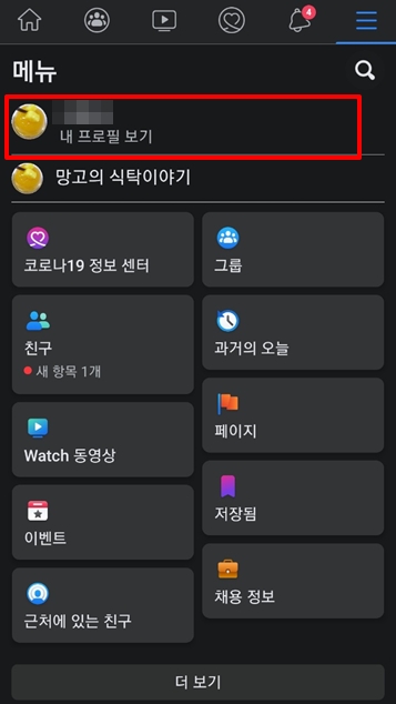 메뉴 화면으로 이동하는데요 첫 번째 보이는 [내 프로필 보기]를 선택해주세요.