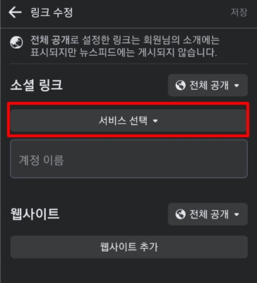 소셜네트워크 링크의 [서비스 선택]을 선택합니다.