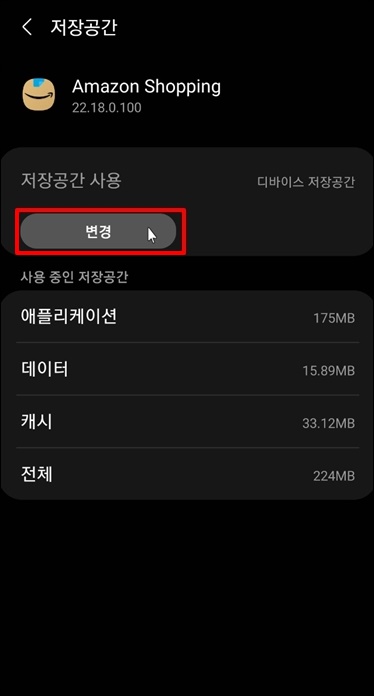 변경 메뉴가 나오지 않으면 해당 어플이 이동을 지원하지 않는 것입니다.
