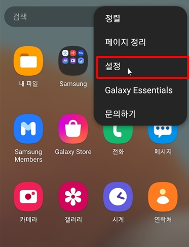 설정 화면으로 의도하면 메뉴 중 [애플리케이션 숨기기]를 선택합니다.
