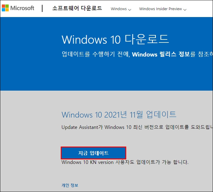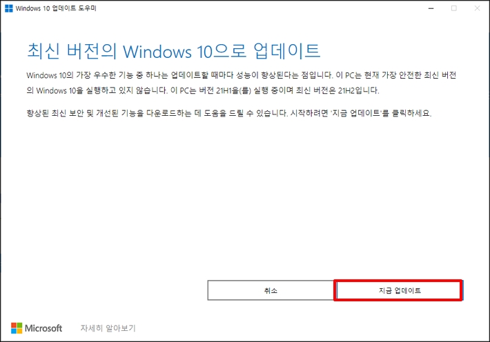 사이트에 접속하면 [지금 업데이트] 버튼을 클릭해주세요.