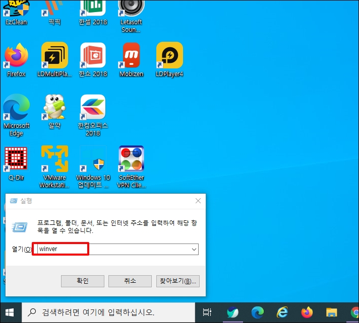 실행 창이 열리면 "winver" 입력 후 엔터키를 눌러주세요