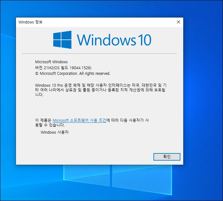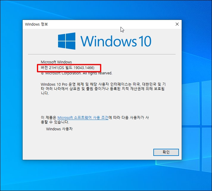 업데이트 완료 후 재부팅 되면 설치 윈도빌드 버전이 업데이트되었는지 확인하기 위해