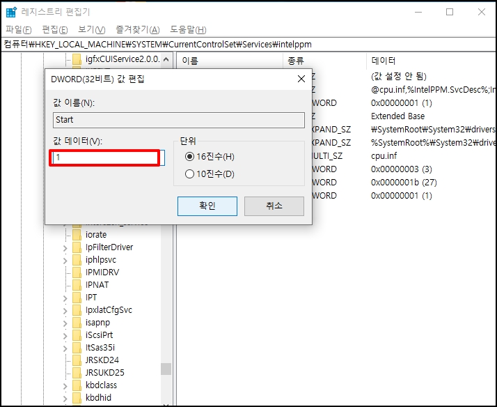 컴퓨터\HKEY_LOCAL_MACHINE\SYSTEM\CurrentControlSet\Services\intelpp