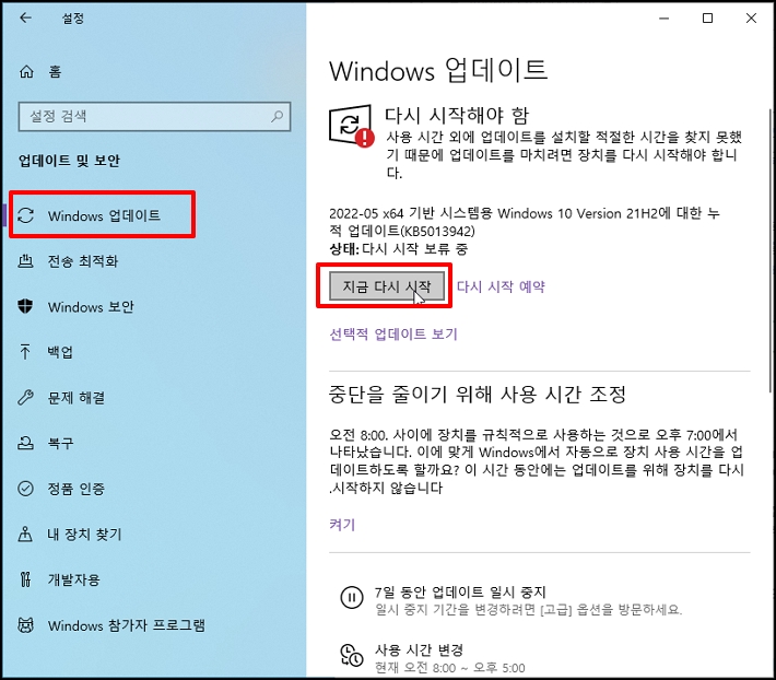 업데이트 창이 열리면 최신 버전으로 윈도우 업데이트를 진행합니다.