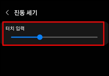 진동 세기 터치 입력 바를 조절해서 터치 세기를 원하시는 세기로 조절할 수 있습니다.