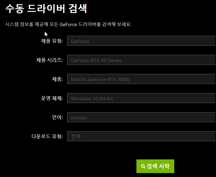 그래픽 드라이버를 최신버전으로 다운로드 후 설지를 진행합니다.