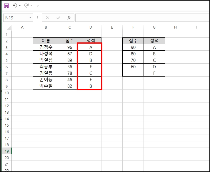 수식이 적용되어 점수가 모두 입력된 것을 확인할 수 있습니다.