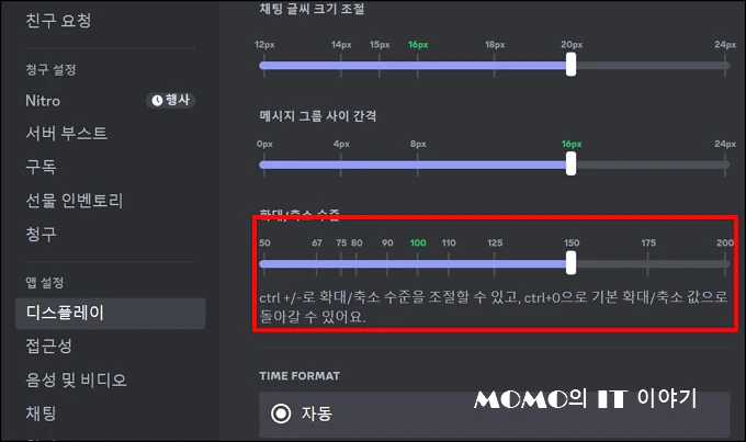 디스코드 화면 확대와 글씨 크기 변경 하기와 화면 크기 조절하기