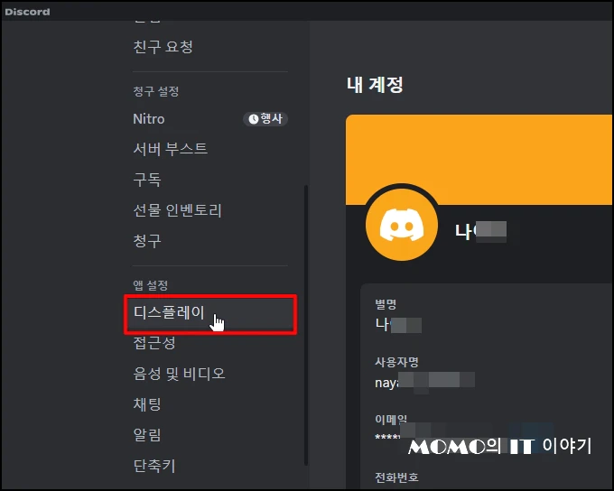 디스코드 디스플레이 설정 화면으로 이동하면 화면 제일 하단으로 이동합니다.