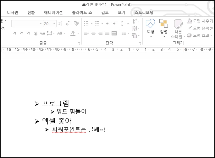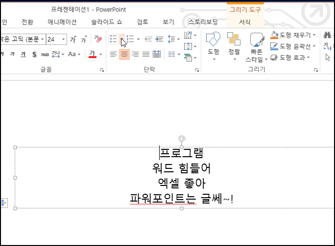 파워포인트에서 내용 입력 시 글 머리 기로를 삽입해서 사용하는데요.