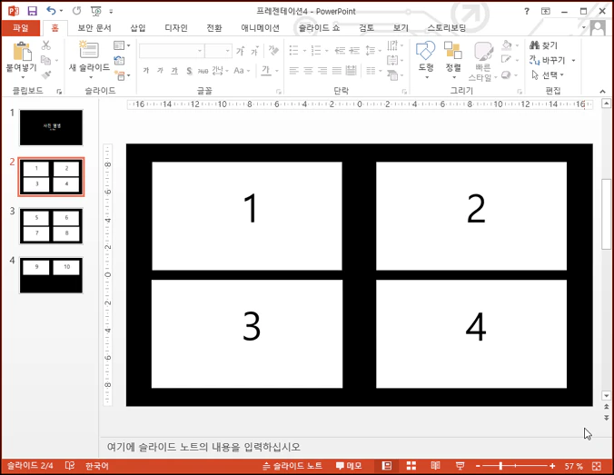 한 슬라이드에 4개 이미지가 한 번에 들어간 것을 확인할 수 있습니다.